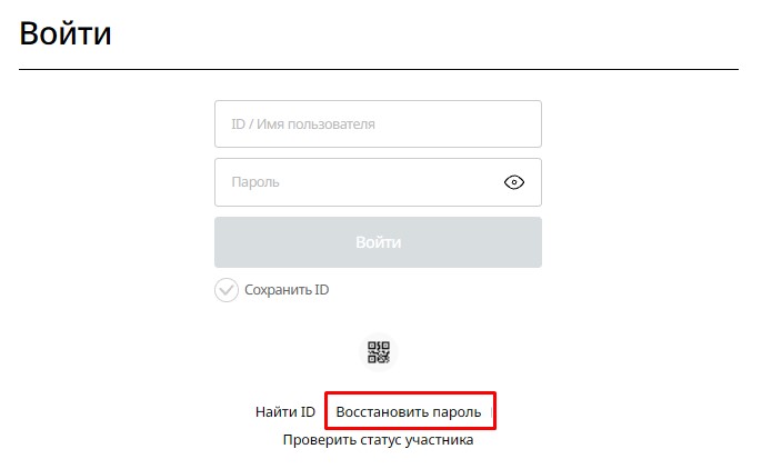Для восстановления пароля также перейдите на страницу входа в личный кабинет.