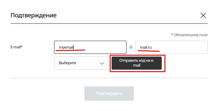 Для этого заполните свой email и нажмите «Отправить код на e-mail».