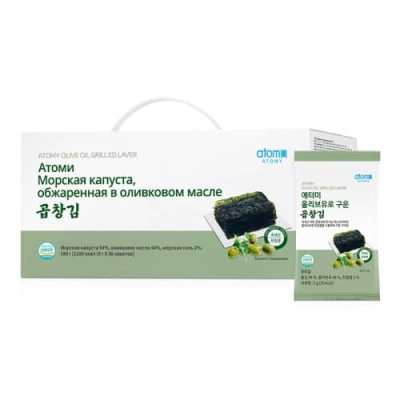 Атоми Морская капуста жареная в оливковом масле — натуральная Корейская жареная морская капуста с добавлением оливкового масла и высушенной на солнце соли. Полезная и питательная, обладает пикантным хрустящим вкусом и словно тает во рту. Специально упаковано в отдельные пачки, чтобы продукт долгое время оставался свежим. Также удобно делиться с друзьями и семьей.