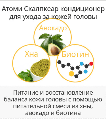 Атоми Скалпкеар кондиционер для питания, увлажнения и восстановления баланса кожи головы с помощью питательной смеси из хны, авокадо и биотина.