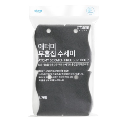 Губка Atomy «не оставляющая царапин» — обновлённая трёхслойная губка для мытья посуды, созданная для бережной и гигиеничной очистки. Уменьшенная ширина и высота на 5 мм ускоряют стекание воды и смывание моющего средства, что снижает риск размножения бактерий.