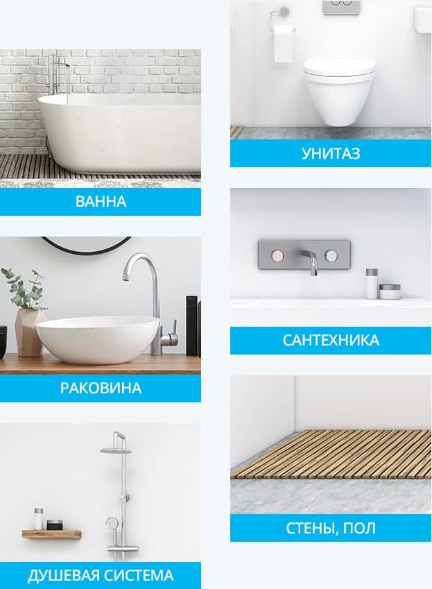 - Средство с легкостью справляется с различными загрязнениями в ванной комнате.
